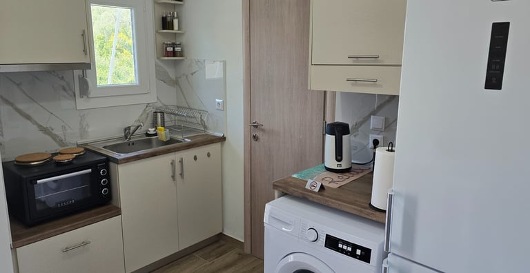 Apartman Corali luxury je smešten na samoj plaži u zalivu Peliona. Ulaskom u apartman kuhinja sa trpezarijom će vam dočarati kako je vrhunski opremljen prostor za vaš odmor. Tu je sve što vam je potrebno za pripremu, čuvanje hrane i ugodan boravak.